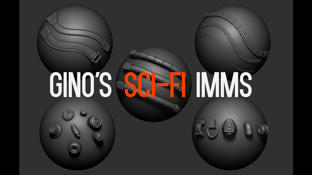 A small collection of miscellaneous ZBrush Sci-Fi insert mesh brushes I made to use in my hard surface projects, to fill in areas, make cables, plug them somewhere and many other use cases.